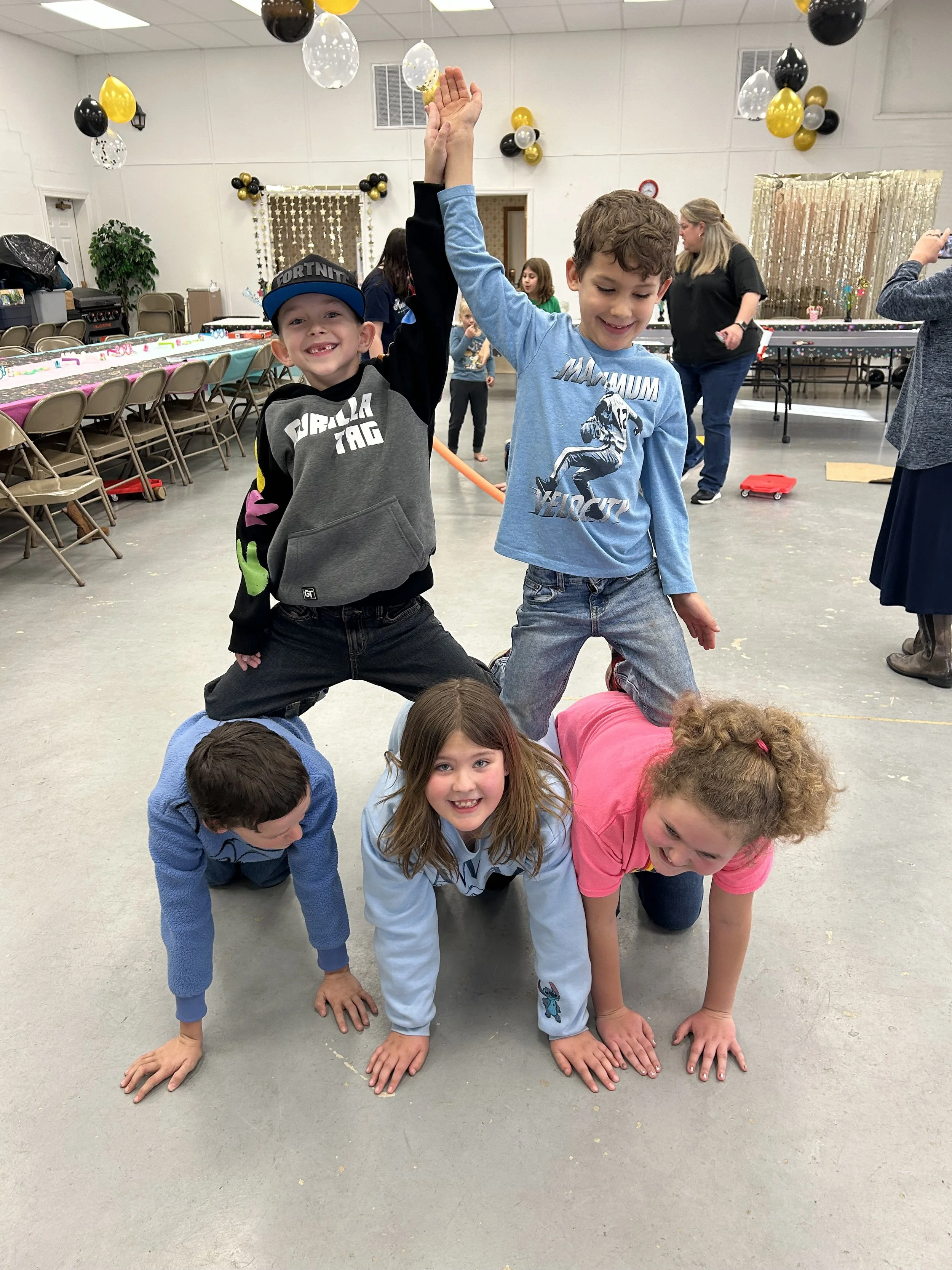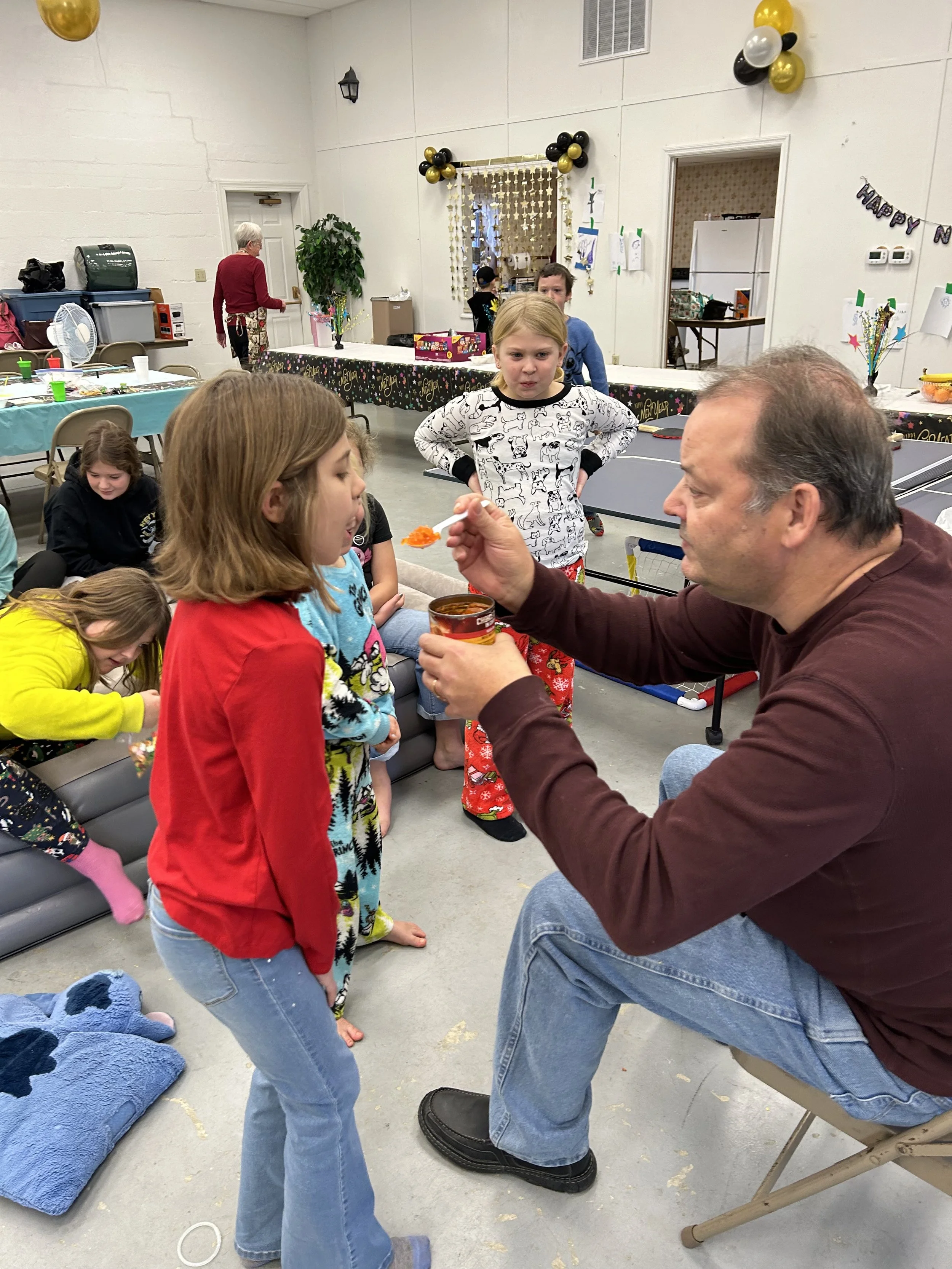 Tabernacle Kids Club rang in the New Year with at lock-in at the church! The kids (and adults!) enjoyed exciting games, great food, entertaining movies and…..our traditional GLOW PARTY at midnight!!